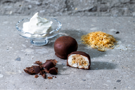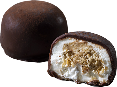 生クリームのやわらかさ、キャラメルのザクザクまで。温度で表情が変わる食感と香りを一粒で。