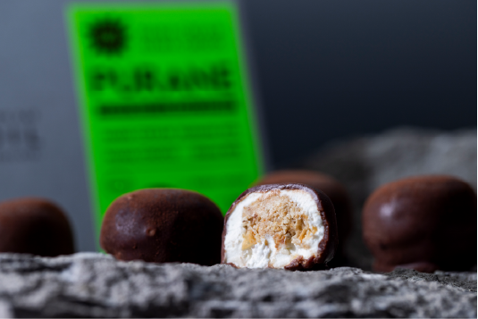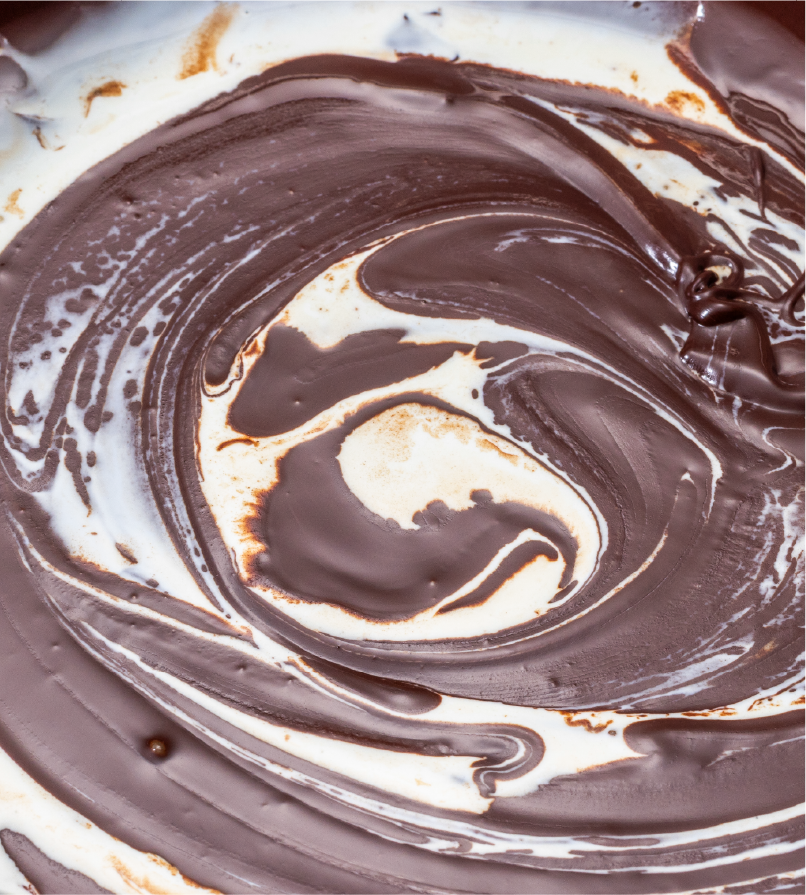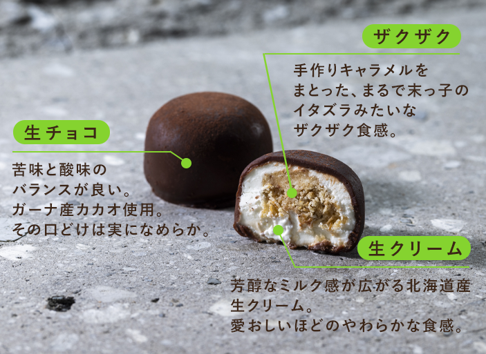 ガーナカカオのコクとほろ苦さを芯にした三層仕立て。生チョコのなめらかさ、