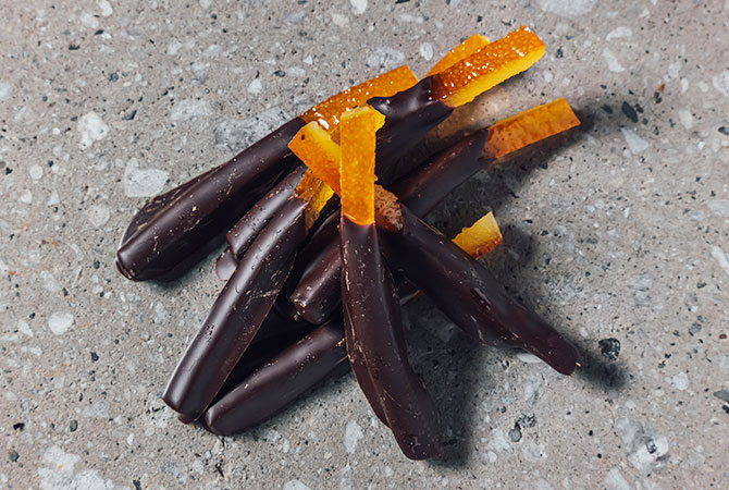 原材料名:オレンジピール(フランス製造)、グルコースシロップ(小麦を含む)、カカオマス(カカオ豆(ベネズエラ産))、砂糖